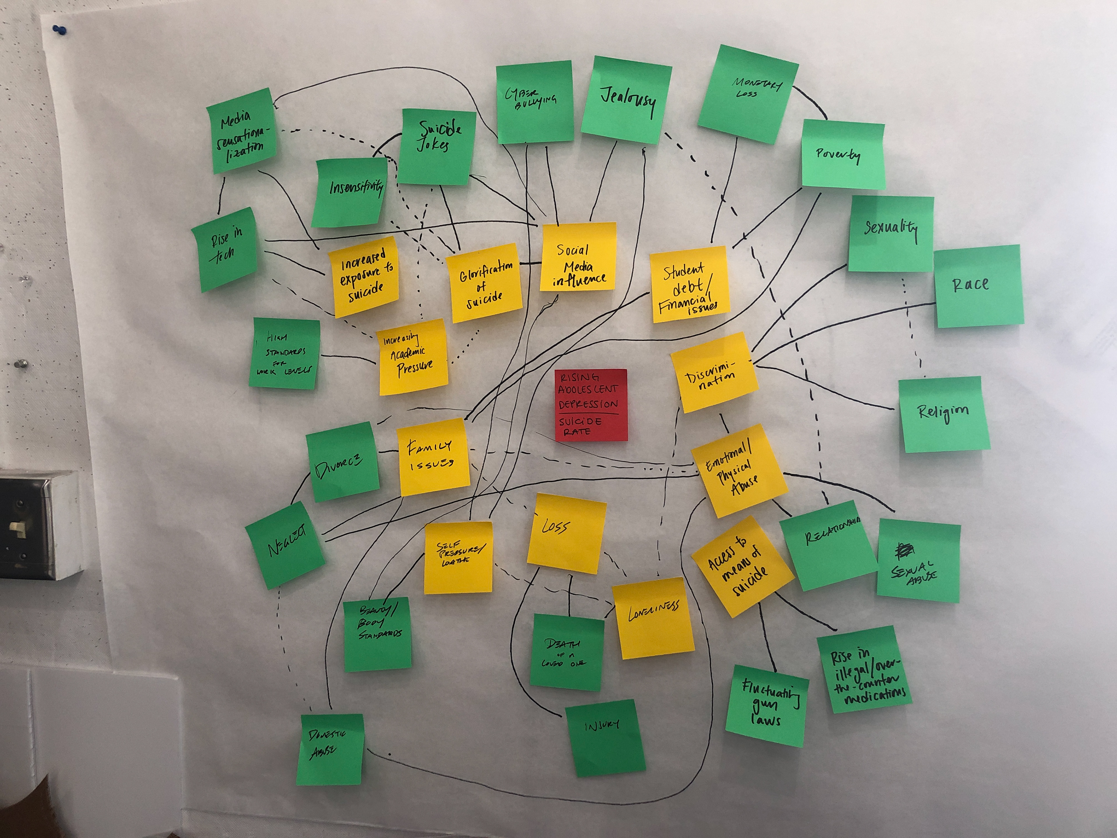 Rising adolescent depression and suicide rates is a wicked problem primarily because there isn't one clear cause, and therefore one clear solution. This problem began over a decade ago and has since been rapidly increasing in severity. In order to reach any kind of resolution, we needed to propose feasible interventions and determine where these interventions needed to occur.